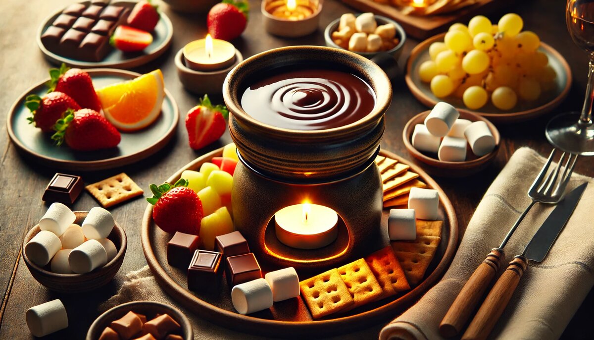 Шоколадное фондю — это воплощение уюта и радости, десерт, который создаёт атмосферу праздника в любом доме. Расплавленный шоколад, нежные фрукты, хрустящие крекеры и маршмеллоу — всё это соединяется в одном блюде, которое поднимет настроение и взрослым, и детям. Простое в приготовлении и невероятно вкусное, фондю станет идеальным завершением любого вечера, будь то романтическое свидание или шумная вечеринка.