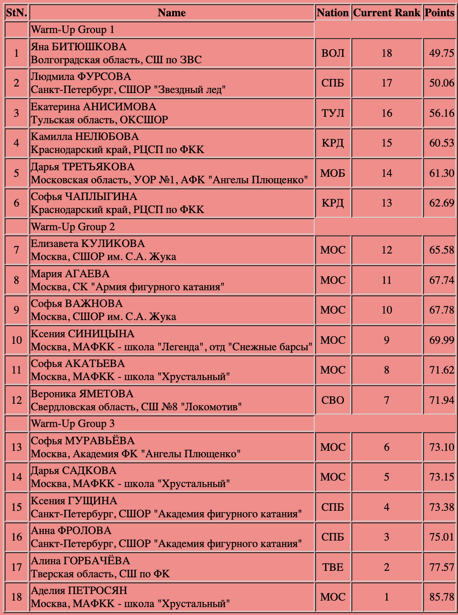 Развязка не была зрелищной, но плохо предсказуемой - это точно. Всего две сотые балла разделили 3 и 4 места, и в итоге спортсменка проиграла короткой программой, как нередко бывает. Жаль, что тройка призёров снова состоит из несовершеннолетних фигуристок, но это спорт.