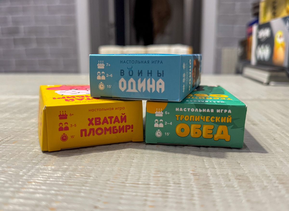В общем, когда я брала сет из трёх малышек («Тропический обед», «Хватай пломбир» и «Воины Одина»), я была уверена, что все эти коробочки пойдут потом на подарочки на разных настольных мероприятиях (я планировала до НГ читать лекцию по настолкам в одном из образовательных центров и там чего-нибудь «разыграть» — с учётом новичковой аудитории такие настолки — самое то). В итоге «Воины Одина» на наших семейных настольных вечерах прижилась и, похоже, останется в итоге в коллекции под настоятельным увещеванием Витали (внезапно) и Ники. ПРАВИЛА В «Воинах Одина» вас встречает только колода карт викингов. В игре есть карты номиналом от «1» до «9» и шесть цветов. Цель партии — избавиться первым от своих карточек (каждому раздаётся по 9 штук). Когда хотя бы один игрок остался в игре без карт, партия моментально заканчивается, и все подсчитывают, сколько карт осталось у них на руках — это штрафные очки. В свой ход первый игрок выкладывает перед собой 1 любую карту. Второй должен «ответить» таким ж