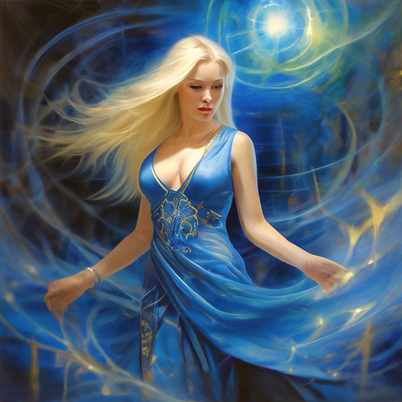 У кухонной двери стояла девица в голубом бикини необыкновенной красоты. Глаза сверкали как два сапфира,а белоснежные локоны ниспадали с плеч, прикрывая собой то, что не прикрыл узенький топчик.