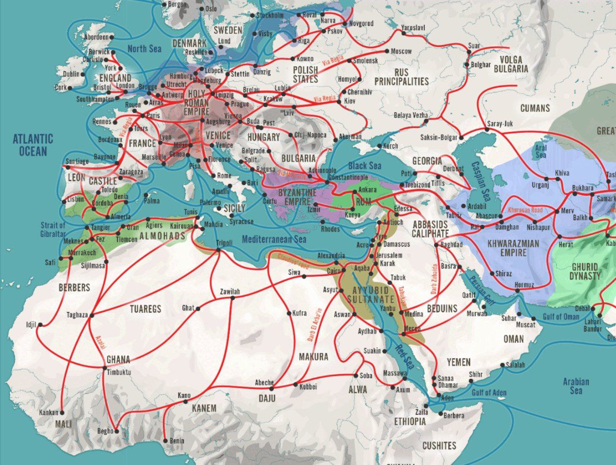 Одним из ключевых торговых путей, проходивших через Русь, был знаменитый путь «из варяг в греки», который связывал Скандинавию с Византией. Однако это был не единственный путь. Не меньшее значение имел Волжский торговый путь, соединявший Русь с Волжской Булгарией, мусульманским государством на Средней Волге, и с исламскими странами Востока. Также был важен трансъевропейский торговый путь, частью которого был маршрут из Среднего Поднепровья, шедший из Киева в южно-немецкое Подунавье — территорию современных Баварии и Австрии. Позднее к ним присоединился Южно-Балтийский торговый путь, который связывал Русь с городами славянского Поморья и Северной Германии.