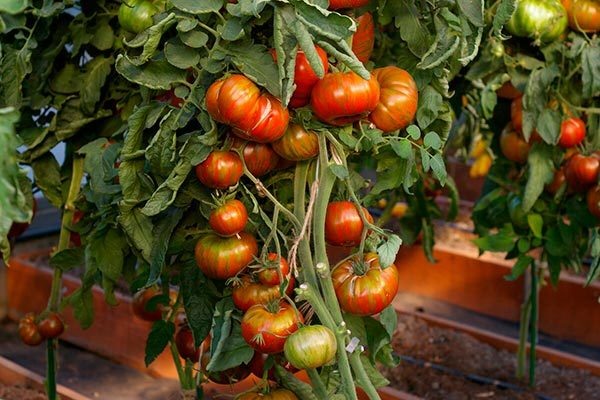 Помидорные кусты можно формировать в один, два или три стебля. Обязательно проводят пасынкование — удаляют побеги, вырастающие в боковых пазухах листьев. Кусты также важно вовремя подвязывать к опоре, например, к шпалерам, иначе его побеги сломаются под тяжестью плодов.
