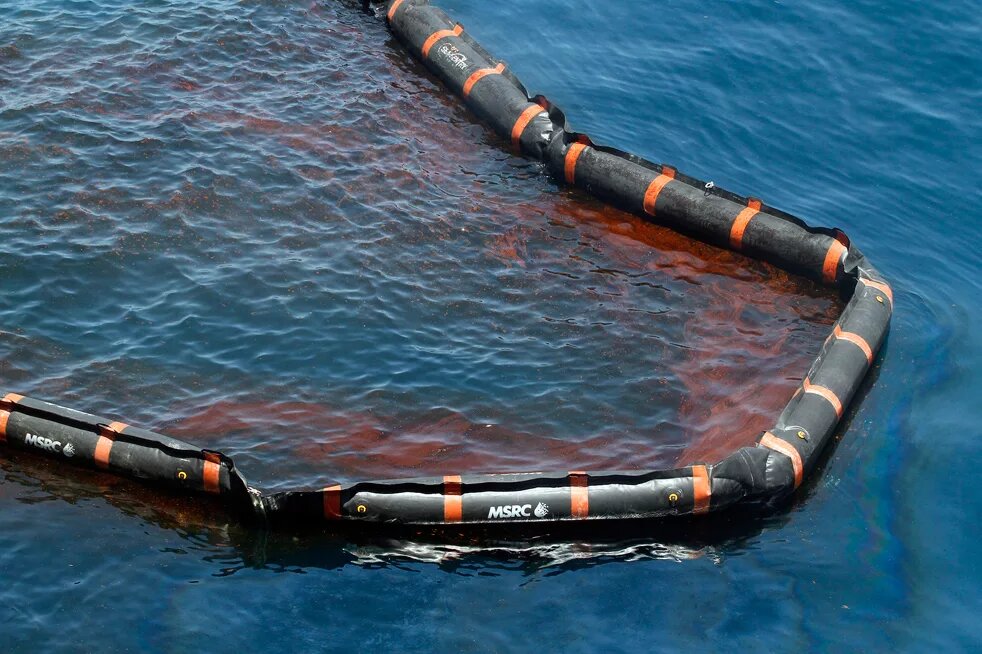 В первую очередь на воду спускается боновое ограждение вокруг всего источника загрязнения. Оно препятствует распространению нефти на поверхности воды. Бон представляет собой по сути поплавки, наполненные воздухом или материалом с положительной плавучестью.