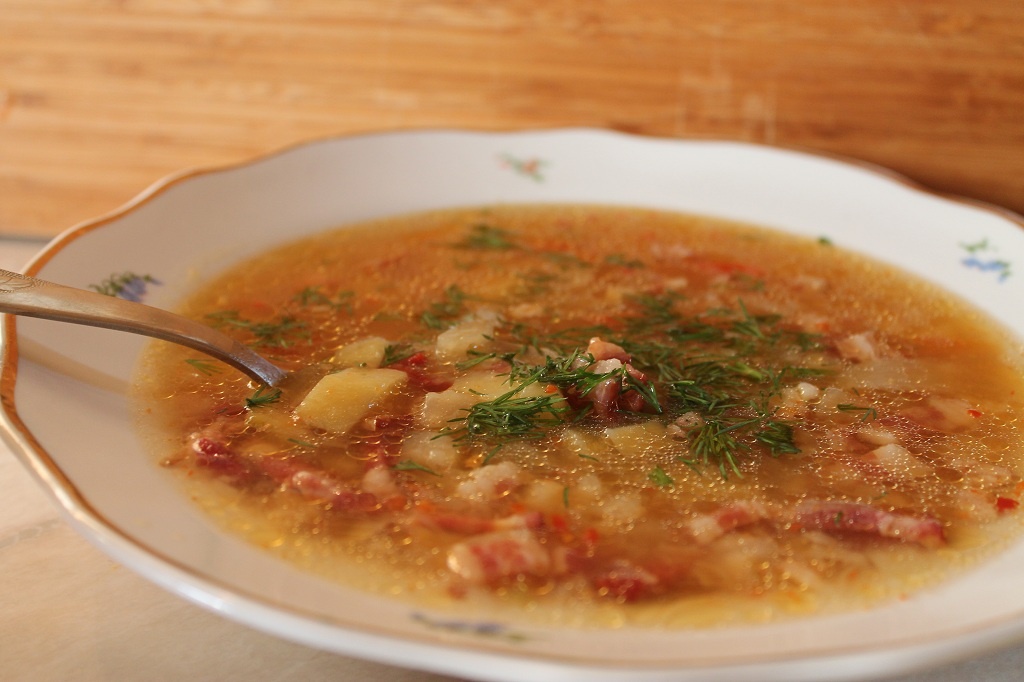 Увидела в магазине упаковку вот таких вот замороженных овощей. О, как... Надо купить В составе упаковки: белокочанная капуста, помидоры, сельдерей, сладкий перец, лук, лук-порей. Вес упаковки 400 грамм. К содержимому упаковки добавила 250 гр замороженной сырокопченой грудинки 3 мелкие картофелины (по размеру каждая чуть больше куриного яйца) перец горошек несколько штук паприка - 1 ст.ложка можно посолить, но с учетом того, что грудинка бывает очень соленой. Вместо грудинки можно: сосиски, сардельки, колбаса любая, ветчина. Если взять замороженные тефтели, то их нужно добавлять, когда суп закипит (дальше в рецепте я подмигну, когда замороженные тефтельки добавлять). Мультиварка выключена, чаша холодная. Высыпаю в чашу замороженную грудинку и овощную смесь из пакетика. Закрываю крышку, включаю программу Жарка 45 минут. И начинаю чистить, резать картошку В мультиварке тем временем содержимое чаши разморозилось и активно тушится. Картошку туда же, перец-горошек и паприку. Наливаю воды д