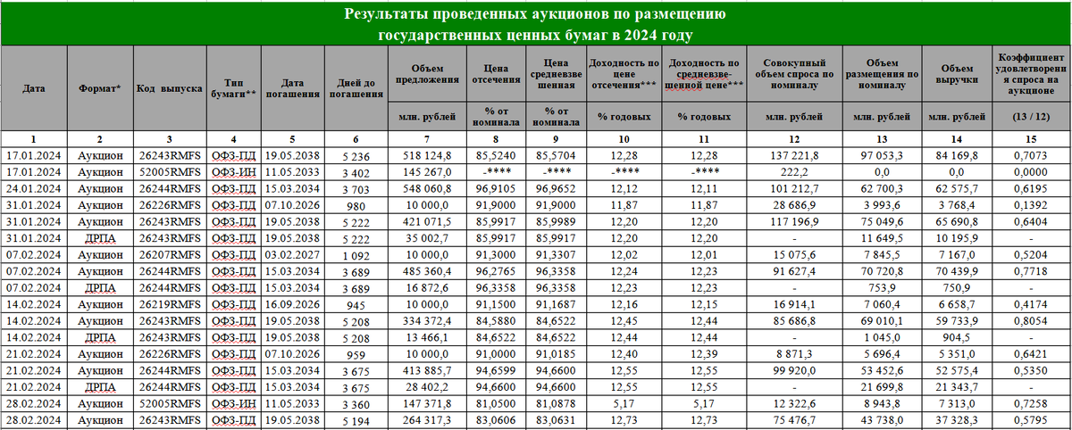 За этот период Минфин выручил на аукционах 2 040 млрд. руб.