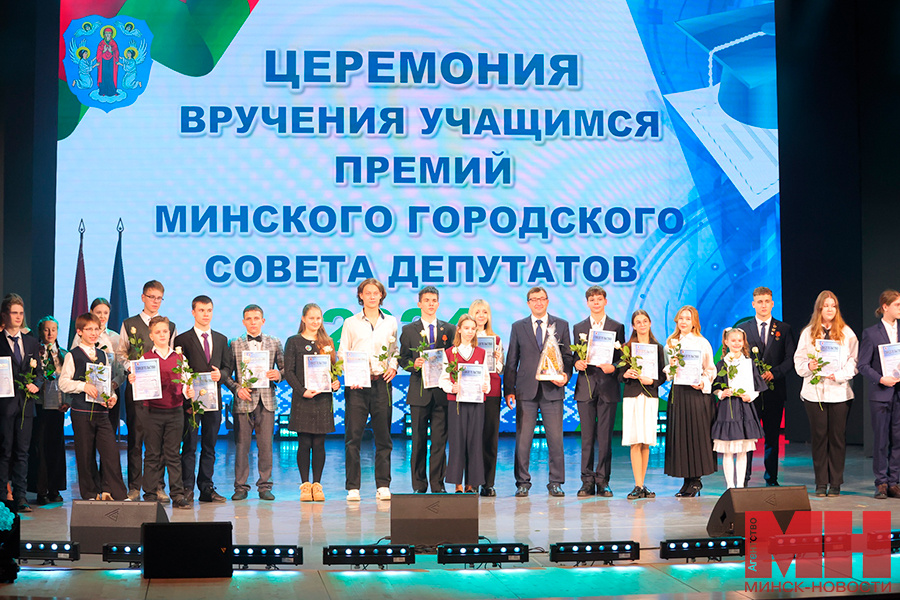 Торжественная церемония вручения премий Мингорсовета учащимся столицы прошла в Минском городском дворце культуры 18 декабря, передает корреспондент агентства «Минск-Новости». Чествовать одаренную и талантливую молодежь Минска — давняя традиция. Школьникам, гимназистам, учащимся колледжей, достигшим высоких показателей в интеллектуальных и исследовательских конкурсах, спортивных и творческих состязаниях, Минский городской Совет депутатов вручает премии. За последние два года возросло количество ребят, удостоенных такого материального поощрения. — Сегодня мы награждаем 200 человек. Это молодежь разного возраста: от второклассников до учащихся колледжей, которые проявили себя в конкурсном движении. И достойны представлять Минск далеко за его пределами. Мы ребят за это благодарим, — отметил председатель Мингорсовета Артём Цуран. — Наши талантливые дети под особым вниманием городских властей. Они наш костяк, основа не только научного потенциала. Ребята — наш актив, мы приглашаем их на встре