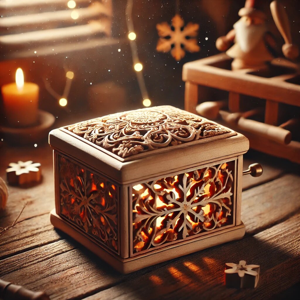 Шкатулки редко приносили доход, но это Василия не волновало. Он верил, что в них скрыто маленькое волшебство. Каждый механизм, каждая мелодия была подобна заклинанию, которое незаметно делало чью-то жизнь чуть лучше. Люди об этом не догадывались, но Василий знал: его шкатулки помогали находить радость даже в самых трудных днях. Однажды, в канун Нового года, он задумал сделать особую шкатулку – для соседской девочки Маши, которой был как дед. Маша недавно пережила своё первое сердечное разочарование – её избранник, молодой человек, с которым она часто гуляла и делилась мечтами, внезапно уехал из их деревни. Он не попрощался и не оставил письма, оставив Машу с горечью и вопросами. Василий знал, как сильно это её задело. "Моя шкатулка поможет ей понять, что жизнь продолжается, а мелодии не заканчиваются на одной фальшивой ноте", – думал он.