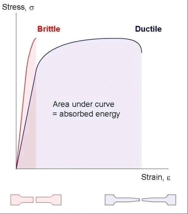 Хрупкость против пластичности. Хрупкое разрушение связано с нарушением межатомных связей, главным образом, в результате напряжений. Оно не сопровождается пластической деформацией, а поверхности трещин имеют кристаллическую природу. Хрупкое разрушение также известно как межкристаллическое разрушение (между зернами). Чисто хрупкое разрушение практически никогда не наблюдается. Разрушению всегда предшествует определенная (хотя и незначительная) пластическая деформация. Сопротивление хрупкому разрушению называется хрупкой прочностью. Этот вид разрушения наблюдается в цинке и его сплавах, железе и низколегированных сталях (после закалки и при низких температурах), когда по границам зерен отделяются хрупкие прослойки. Пластичное разрушение - происходит главным образом из-за напряжений сдвига, которые достигли определенного значения, называемого прочностью на сдвиг. Такому разрушению предшествует значительная пластическая деформация. Поверхности трещин имеют волокнистый вид. Пластичное разруш