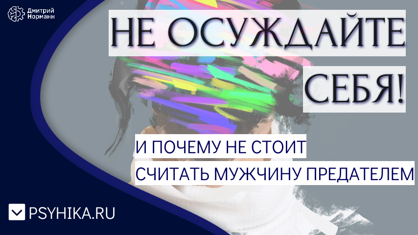 И почему не стоит считать мужчину предателем Когда мужчина ушёл от вас, неважно к любовнице или просто потому что было тяжко, вы должны понимать, что у вас не было вариантов, каким образом проявлять себя в этих отношениях. Но сейчас, благодаря происходящему, она появилась. Не нужно себя осуждать и гнобить, что вы какая-то не такая. Нужно сделать выводы и принимать какие-то действия. Я абсолютно искренне считаю, что если бы вы знали как себя вести по-другому и как эффективней, то неужели ли бы вы себя так не вели? Конечно да. Потому что женщине важно быть счастливой и важно, чтобы её семья была счастливой. На осознанном уровне женщина не будет сама уничтожать мужчину, разрушать семью и делать невыносимым не только его жизнь, но и свою. Тоже самое и с мужчиной. У него на самом деле не было вариантов поступить по-другому. Ошибкой считать, что мужчина предал семью. Я понимаю, что это так выглядит и что мы можем человека в этом обвинять. Но тут возникает такой парадокс: Если мы пыта