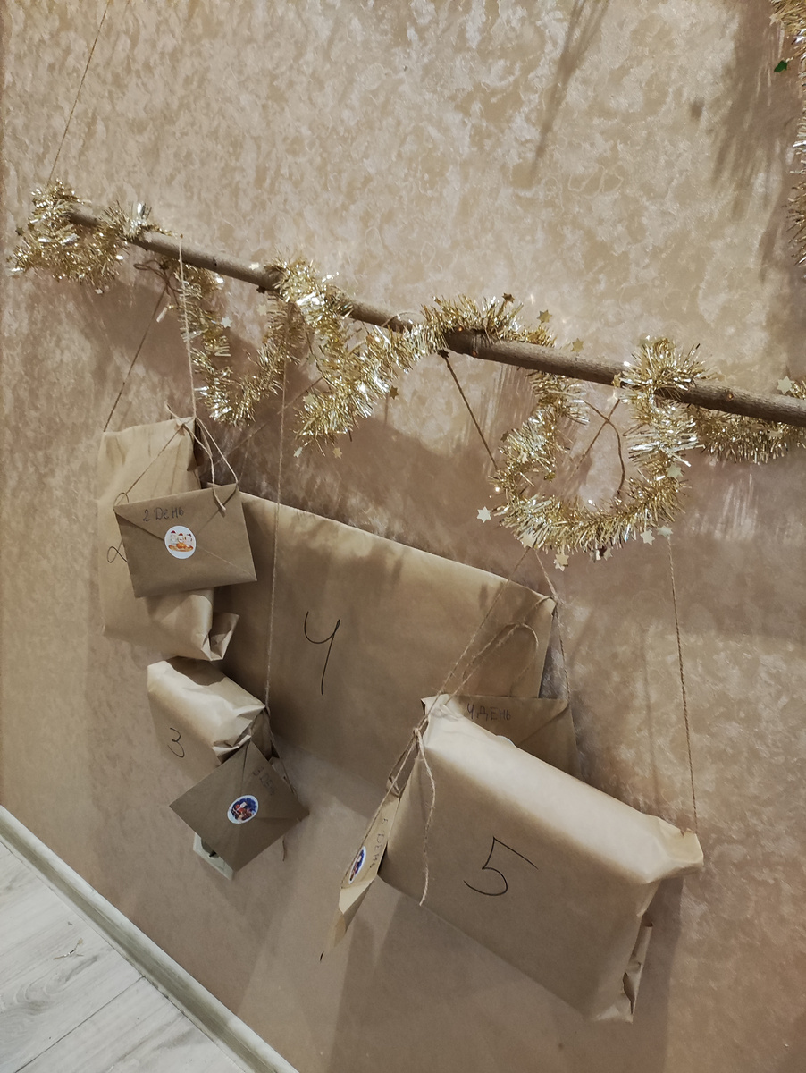 В этот раз повесила я свою палку волшебную в коридоре. Обмотала мишурой и осилила пока только 5 дней🫣