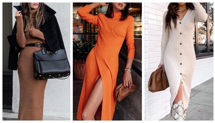 Выбирайте наряды из плотного, качественного трикотажа, который не будет просвечивать и растягиваться. Гуру моды обращают наше внимание на минималистичные силуэтные модели платьев, именно они лучше всего будут смотреться с разной стилистической верхней одеждой и обувью.