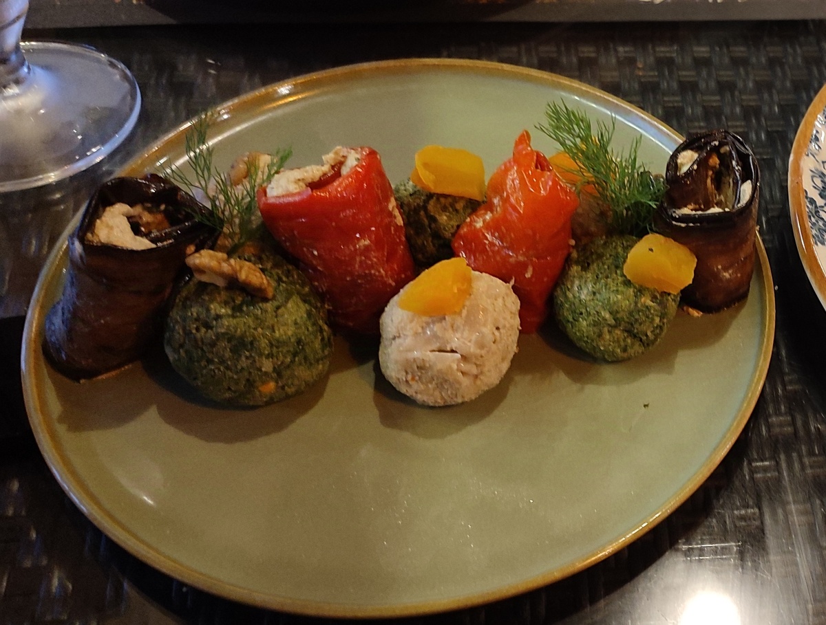 Сразу оговорюсь, я не вегетарианка, и речь пойдёт именно о вегетарианцах, а не о жёстких веганах. Дело в том, что многие из моих подруг не едят мясо, и путешествуя в ту или иную страну, им важно знать, а не останутся ли они там голодные? Например, одна из моих подруг, за исключением молочки и яиц, не ест ничего животного - ни мяса, ни рыбы, а в Южной Корее ей услужливо пытались наложить ну хотя бы креветок в рис. Так вот, Грузия- это рай, для тех, кто не ест мясо! Да, грузины, возможно улыбнутся от категорического нежелания есть мясо, но ведь уже почти в каждом ресторане подаются хинкали с грибами, сыром и картошкой! А ассорти из рулетиков из перцев и баклажан и пхали! Это что-то невероятное. Любителям салатов-гриль подойдёт аджапсандали- вкуснейшие запеченые овощи. Лично я люблю ещё шампиньоны с сулугуни на кеци. Также в Грузии просто огромный выбор разных хачапури с сыром, о которых я подробно писала здесь. Безусловно, лобио, и вообще все блюда из фасоли. Ну и, конечно, фру