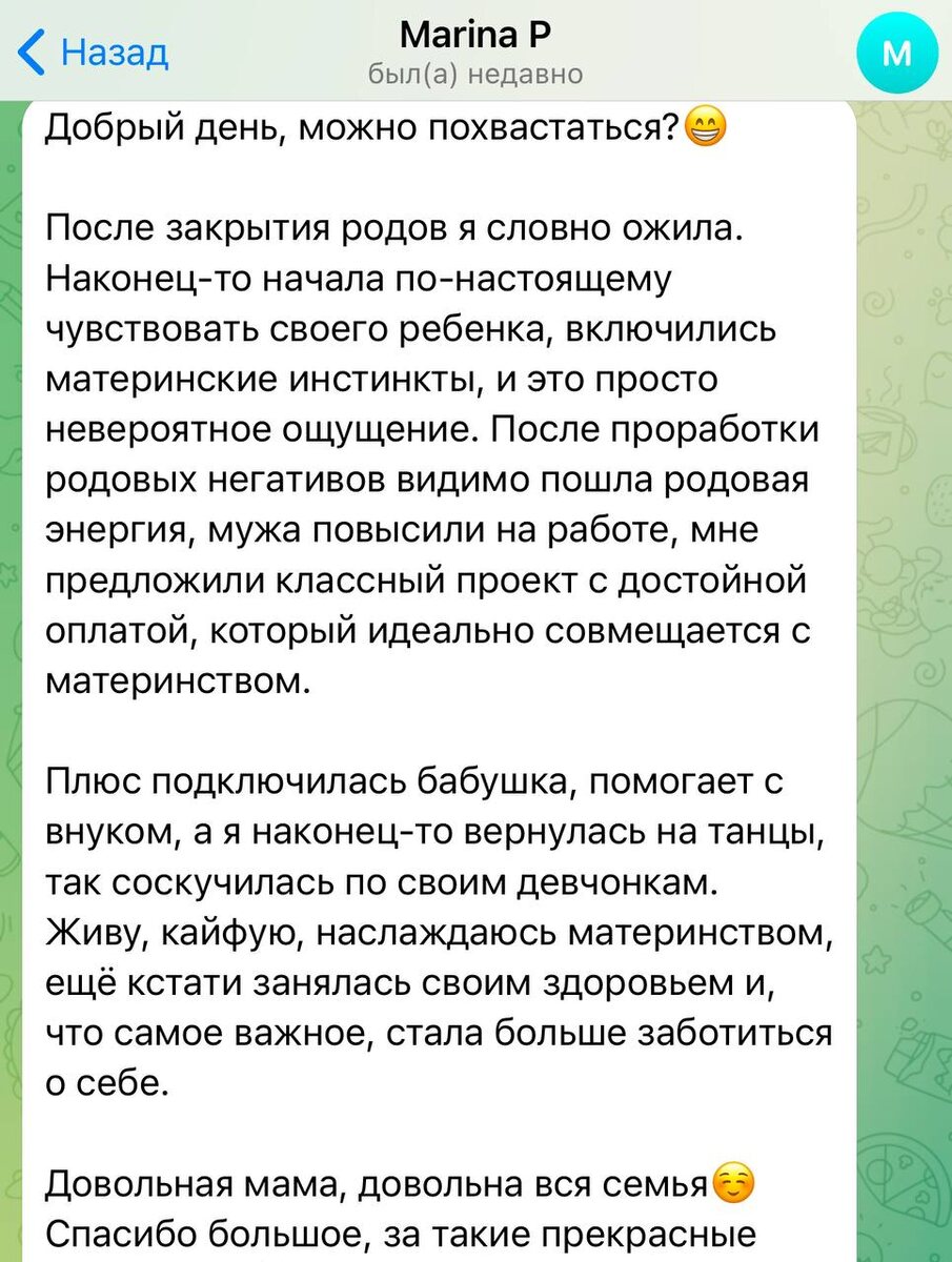 Поделюсь с вами прекрасными отзывами на сеансы регрессивной терапии ❤️ 🔥 Кстати, в одном из этих сеансов мы снимали черную магию… Догадаетесь, в каком? Пишите ваши догадки в комментариях ⤵️ 📌 Онлайн-запись на сеансы: https://lileeva-centr.ru
