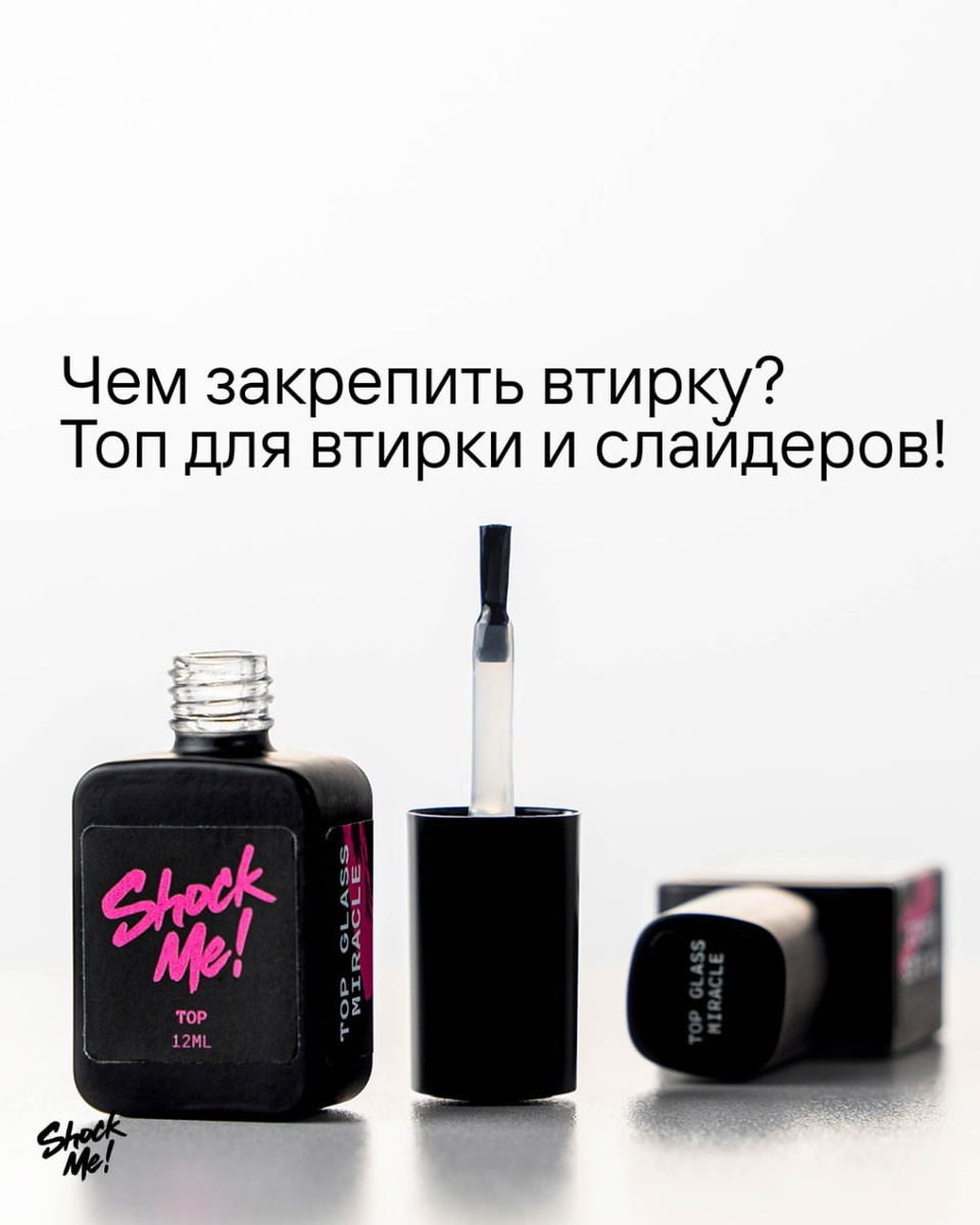 У клиентов скалывается втирка? Все получится по схеме: ✅ Подготовка ногтевой пластины. Запомните, если ваши клиенты приходят с отслойками, то и втирка держаться не будет. ✅ Наносим нюдовую базу или прозрачную и черный цвет. ✅ Покрываем топом БЕЗ липкого слоя. Существуют топы без липкого слоя, на которые ничего не втирается (тестируйте на втираемость). Есть маленький лайфхак: если втирка не втирается, протрите ноготок спиртом и вотрите. ✅ Наносим втирку кистью, спонжем, пальцем, как кому удобнее. Но в конце всегда натираем пальцем для красивого, идеального глянца. ✅ Подпиливаем торец! Это обязательно. Ибо втирка не имеет липкости и её необходимо убрать с края ногтя. ✅ Смахиваем остатки именно мягкой кистью. Если кисть жесткая, то она оставит царапины. ✅ На кончик ногтя (3-5мм) и по бокам наносим Бонд, он как раз создаст необходимую липкость или покрываем ноготок тонким слоем базы, полимеризуем в лампе. ✅ Ну и покрываем топом. В данном случае даже по торцу можно пройтись. Это