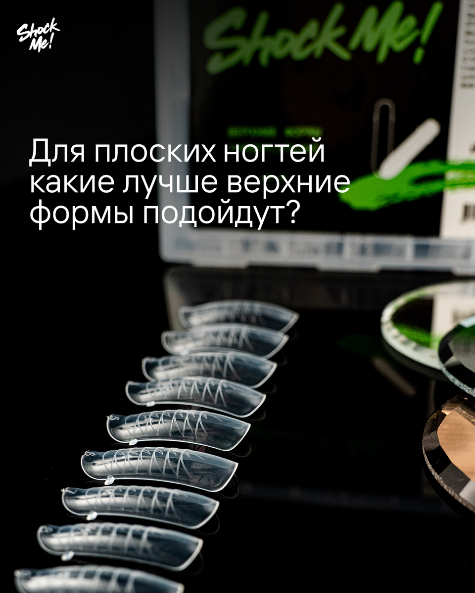2 рекомендации для обладательниц плоских ногтей 1. Для плоских ногтей подойдут универсальные формы. Благодаря им, можно смоделировать короткие ногти как квадрат, так и овал. 2. Мы бы рекомендовали набор Mix 10 Благодаря ему вы сможете моделировать и короткие и длинные ногти с разным изгибом ногтевой пластины. ОБЫЧНО безымянный и мизинец более арочные чем остальные ноготки, а какой-то из ноготков может быть трапециевидным. В наборе так же имеются формы для моделирования сложных форм такие как стилет и арочный миндаль. И помните, верхняя форма - это инструмент, он требует подбора и подгонки под каждый конкретный пальчик. А пальчики-зайчики у все разные и даже на двух руках не похожие. Верхние формы можно найти на WB по поиску: верхние формы шок ми. А если у вас есть вопросы, то смело их задавайте в комментариях Если же мы не ответили на ваш вопрос до сих пор, то просто продублируйте его тут YouTube https://www.youtube.com/@ShockMeNails