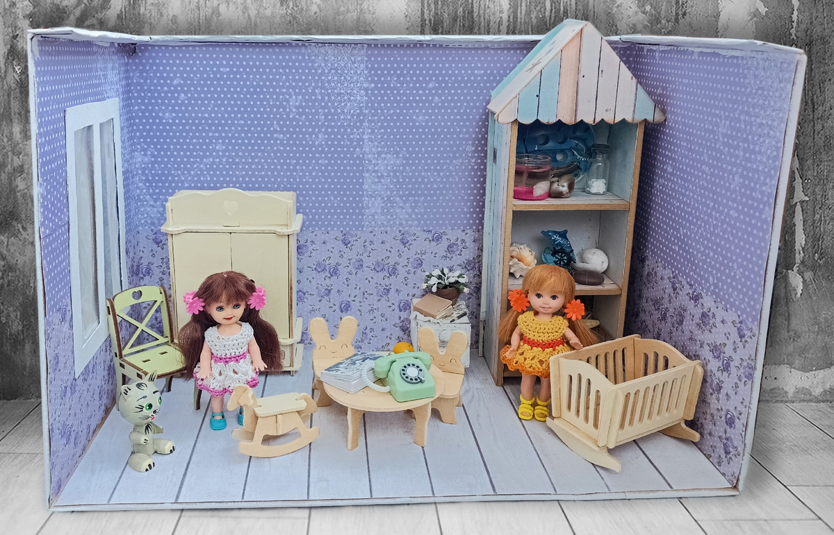 Всем-всем добрый день. Я редко стара появляться, некогда фотографировать мой детский сад. Вот наконец дошли руки показать нашу новую квартиру. А еще хочу рассказать про ее жителей. Отрезала челку Катюшке, связала новое платье. Ей очень идет белый цвет. Девочка получилась хорошенькая. Не мой формат немножко. но куда же деваться, мне ее когда-то отдали "в нагрузку" голенькую и лысенькую) Теперь она выглядит вот так. Вторую девочку я когда-то давно нашла на улице, забрала домой, но любви не случилось. Было много тому причин. Я ее помыла, одела и поставила на полку с глаз подальше. Стояла она такая несчастная, пока мне не попались остатки трессов, которых как раз хватало на маленькую головушку. Я ее перепрошила и случилось чудо. Девочка изменилась до неузнаваемости, причины нелюбви исчезли и вот. Назвала я ее Луша и поселила вместе с Катюшкой в новой квартире. Девчонки хорошенькие получились. Периодически мониторю авито в поисках Келли. Была мысль пересадить на шарнирное тело. Но останавл