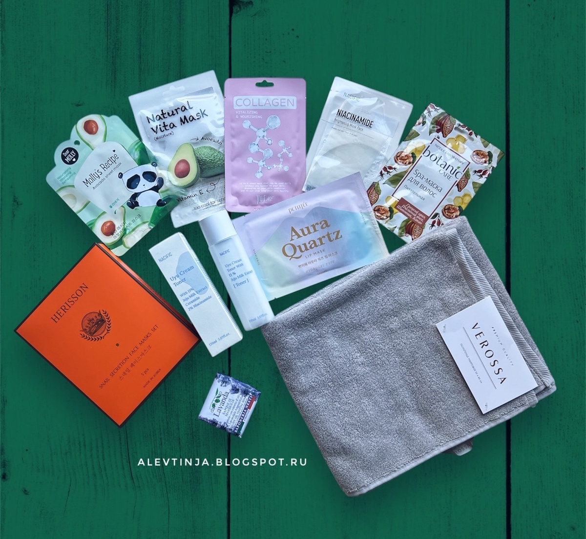 В четырнадцатой лэтуалевской посылке - мой стандартный наборчик: маски, мыло, полотенце и внезапно тоник. Смотрим!