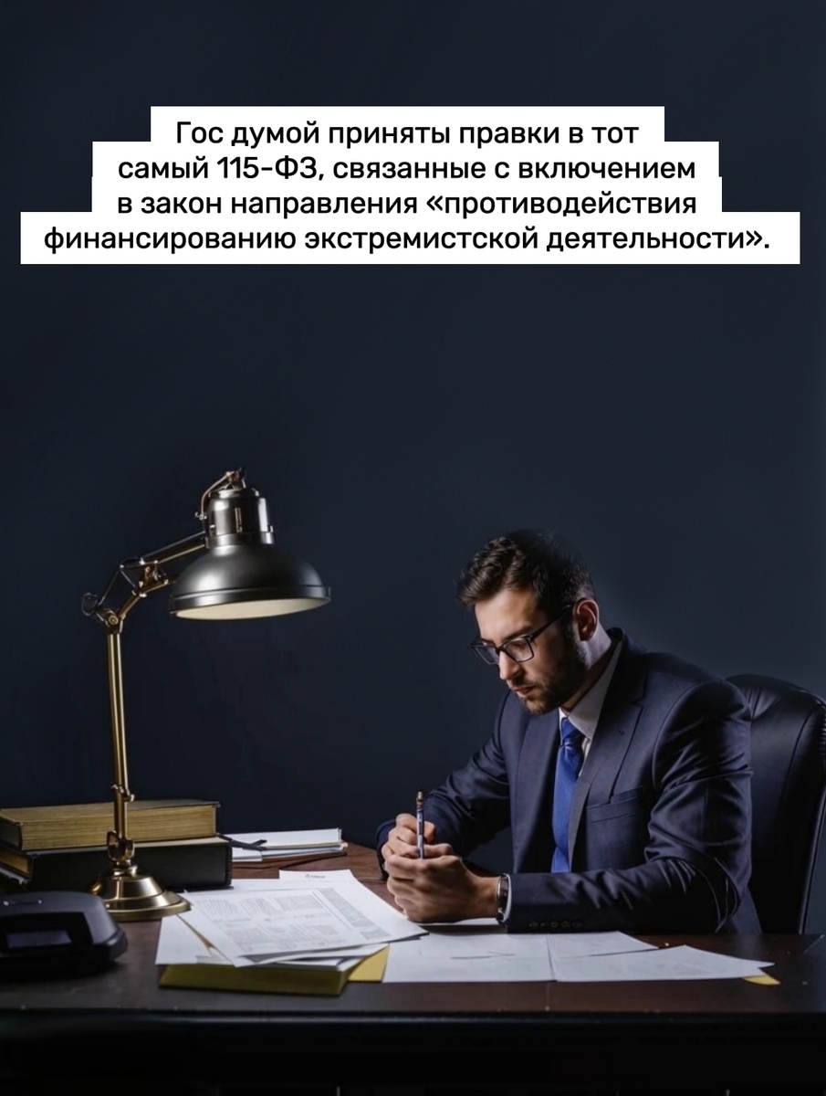 Они связанны с включением в закон направления «противодействия финансированию экстремистской деятельности». 👮♂️ В тот самый 115-ФЗ добавляется определение финансирования экстремистской деятельности - предоставление или сбор средств либо оказание финансовых услуг, заведомо предназначенных для финансирования организации, подготовки и совершения хотя бы одного из преступлений экстремистской направленности, признаваемых таковыми в соответствии с УК РФ, либо для обеспечения деятельности экстремистского сообщества или экстремистской организации. Правки скорее можно назвать техническими, так как отдельные положения законопроекта РосФин и субъекты исполнения Закона 115-ФЗ давно выполняют. Например, замораживание средств или иного имущества. Таким образом, возлагаемые законопроектом на финансовые организации новые обязанности уже частично связаны с реализуемыми в настоящее время и, в целом, будут касаться предоставления информации о финансовых операциях проверяемых лиц по запросу Росфинмони