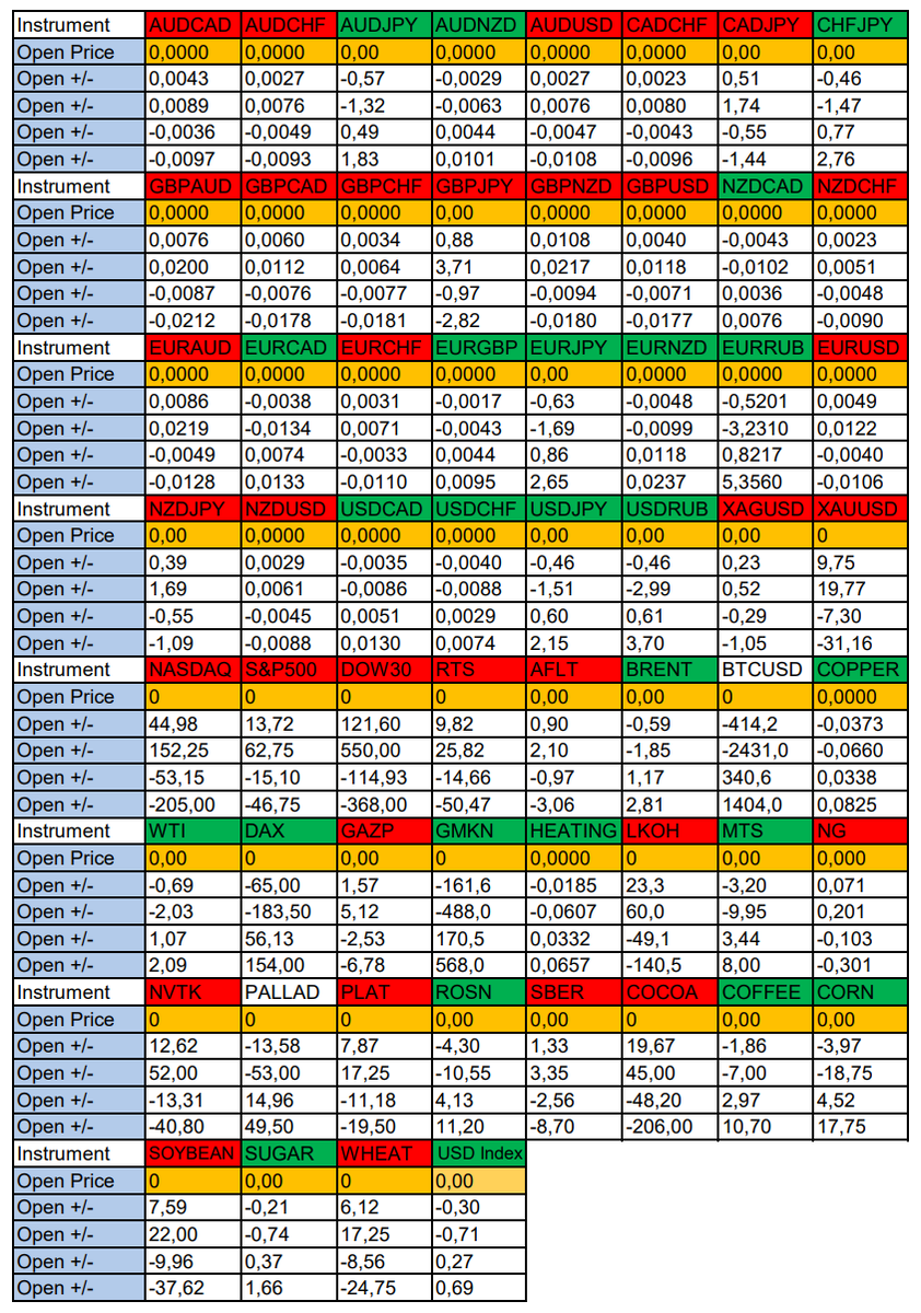 Здравствуйте Уважаемые трейдеры! Александр Борских подготовил для Вас свежую информацию. Очередные сезонные тенденции на Четверг 19 Декабря 2024 по основным мажорам финансовых рынков. Весь перечень анализируемых активов указан ниже в общем количестве 60 инструментов. Здесь Вы найдете активы рынка Форекс, популярные активы Московской биржи, не менее популярные активы Чикагской биржи СМЕ и мажор криптовалютного сегмента - Биткоин, за которым следуют все альткоины. Первый блок информации с зонами лимитных покупок и продаж. Данная информация включает в себя не только статистический показатель волатильности каждого актива, но и ближайшие опционные страйки с учетом премий за риск (Для верных расчетов рекомендуется просмотреть теоретическое видео в свободном доступе - Как использовать блок сезонности). А теперь сам блок информации №1: Второй блок информации с направленным вектором движения и вероятностями (внимательно обращаем внимание на цену открытия каждого актива. Обязательно для верных р