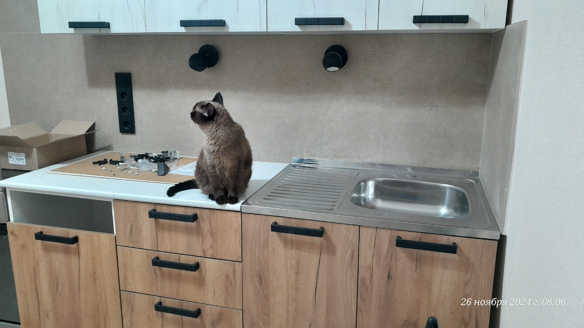 Сразу предупреждаю, это не статья о том, как НУЖНО И ПРАВИЛЬНО делать ремонт, а, скорее, отчет о том, что было и что получилось. Это кухня, где нам нравится так и где мы "живём". Короче говоря, Наша кухня = наши правила! Конечно, мы планировали ремонт, но где-то в марте-апреле 2025... Но тут сложились звезды и пришлось буквально за 4 дня приготовиться и начать! Срочным порядком вся техника вынесена и распределена по углам квартиры (ее менять мы не планировали). Холодильник, как видно, занял почетное место в прихожей. Вообще, очень важно доверие к мастерам, которые работают. Нам в этом смысле просто феерично повезло! Итак, утром оставляем мастерам ключи и уходим на работу. Итоги 1 дня: Второй день: Следующий этап: Стены очищены от старого, "нажитого непосильным трудом". Разница до и после работ очевидна Прошла неделя, 5 полных рабочих дней. Итак, вот что сделано: вместо скрипящих полов и неровных стен получаем симпатичное помещение с удобным для нас расположением розеток, выключател