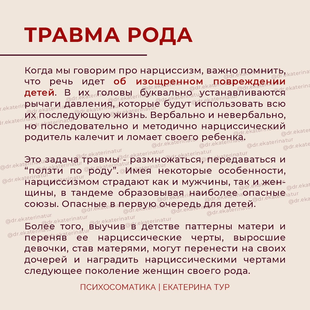 В современном обществе всё чаще поднимается вопрос о влиянии родителей на развитие и формирование личности ребёнка. Одной из наиболее обсуждаемых тем является воздействие нарциссической матери на психику её детей. Нарциссизм как личностное расстройство характеризуется чрезмерным самолюбием, стремлением к восхищению и отсутствием эмпатии. Когда такая черта проявляется у родителя, это приравнивается к травмирующему детскому опыту. Нарциссическая мать обычно сосредоточена на собственных потребностях и желаниях, игнорируя или недооценивая чувства и нужды своих детей. Это может проявляться в разных формах: от открытой критики до манипуляции эмоциями ребёнка. В результате у детей таких матерей часто развивается целый спектр психологических проблем. Последовательно и методично с самого первого дня жизни ребенка такая мать устанавливает внутри него рычаги, на которые будет давить всю его последующую жизнь. На эти рычаги также будут давить другие люди, чтобы управлять и манипулировать внушаемым