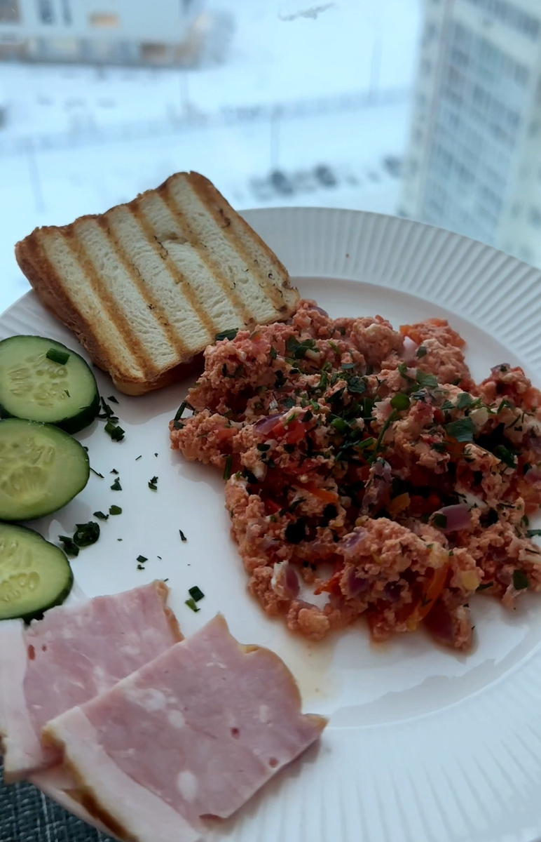 Рецепт турецкого завтрака,что-то наподобие менемена🙌🏻 Помидоры ✅ Перец болгарский ✅ Лук репчатый,или красный✅ Чеснок ✅ Томатная паста,я беру фирмы Помидорка✅ Можно добавить сыр моцарелла✅ Яйца✅ Зелень по вкусу✅ Можно отдельно добавить огурчики,мясо,и наслаждаемся своим великолепным утром🫶🏻