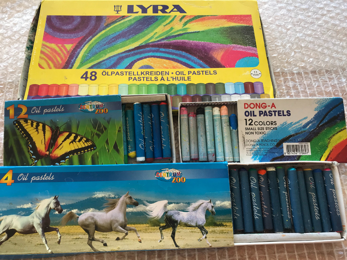Я выложила фотографии масляных мелков, восковых карандашей и масляной пастели (на коробке всегда пишется oil pastel) которыми пользовалась сама и которыми часто рисуют участники тренингов. Самая лучшая, на мой взгляд – пастель и мелки фирмы Adel – рекомендую их, - если у тебя будет возможность выбора.