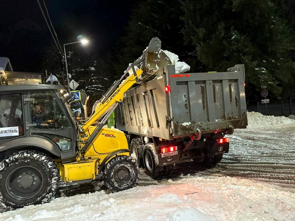 Задействованы 126 рабочих и 74 единицы техники. За ночь муниципальные, краевые и федеральные подрядчики использовали около 75 тонн противогололедных материалов.