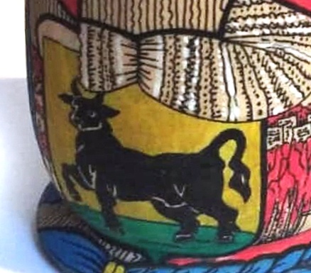 В ней соблюдены все признаки сызранского сувенира: матрешка выточена из местного дерева, изображена девушка с гербом города Сызрань. Роспись платка так же украшают быки - символы богатства и достатка. А над ними - лебеди, символы любви. По краю платка вязью - цитата из стихотворения Лины Волькен "Сызрань". Под платком - повязка, украшенная жемчугом, когда то добываемом по берегам Волги от верховий до наших мест. В нижней части по подолу сарафана изображены: главный архитектурный символ нашего города - Кремль, Храм Рождества Христова, Речной вокзал и Элеватор, грузовой порт и один из главных промышленных символов Сызрани Нефтеперерабатывающий завод - СНПЗ.
