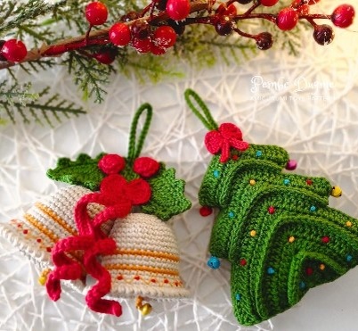 Может быть, вы захотите повесить на свою елку симпатичные колокольчики или шарики? Вот пара версий дизайна: