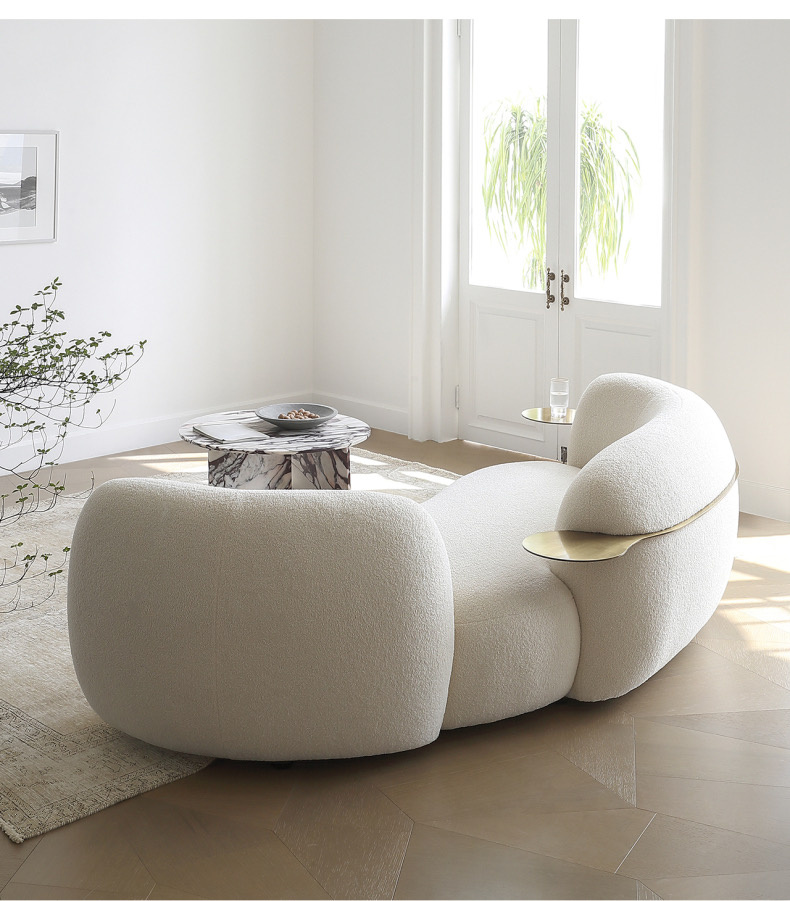 Диван SECOLO Tateyama с изящными закруглёнными линиями напоминает природные изгибы, привнося в интерьер спокойствие и утончённость. Его обивка из букле добавляет текстуру и мягкость, что делает его идеальным для современных интерьеров.