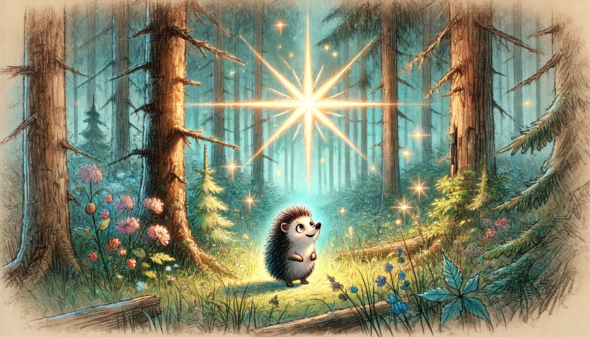 В волшебном лесу, где деревья шептали свои тайны ветру, а солнечные лучи играли в прятки с цветами, жили три верных друга: мудрая сова Луна, смелый кролик Тими и ловкий ёжик Рома. Каждый день они находили повод для новых приключений, но на этот раз их ожидало нечто совершенно особенное. Одним ранним утром, когда солнце только начинало освещать лес, друзья встретились у старого дуба. Рома, возбуждённый и воодушевлённый, поделился новостью: — Знаете ли вы историю о звёздном свете? — начал он, его иголки слегка подрагивали от волнения. — Звёздный свет? Что это? — удивлённо спросил Тими, его уши поднялись в нетерпении. Рома, блеснув глазами, рассказал: — Когда-то над нашим лесом горела звезда, которая дарила радость и свет каждому жителю. Но однажды она исчезла, и с тех пор лес стал немного темнее. — Как интересно! — воскликнула Луна, её мудрые глаза заблестели. — Нам обязательно нужно узнать, что с ней случилось. Тими подпрыгнул, полон решимости: — Давайте отправимся на поиски! Мы найдём