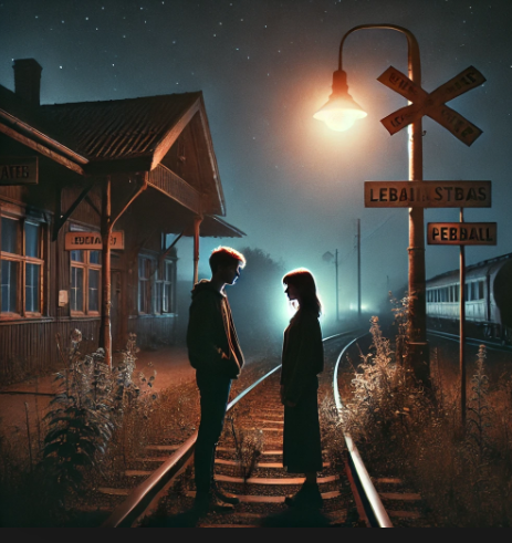 В маленьком городке, окруженном лесами, жила девушка по имени Анна. Она была смелой и любила приключения, поэтому, когда её парень Артем предложил провести ночь на заброшенной железнодорожной станции, она сразу согласилась. Станция, построенная в начале XX века, давно не функционировала, и местные жители говорили, что там водится что-то зловещее. На закате пара пришла на станцию. Старая платформа была покрыта мхом, а ржавые рельсы вели в темноту леса. «Это будет незабываемо!» — с ухмылкой сказал Артем, развозя свой фонарик. Анна почувствовала легкое беспокойство, но быстро отогнала его. Они развели костер и начали рассказывать друг другу страшные истории. Вскоре Артем, подшучивая, предложил сыграть в «Призрака станции». Он сказал, что, если они найдут что-то странное, должны будут немедленно покинуть место. Анна, смеясь, согласилась. Ночь окутала станцию, и тишина стала давить на уши. Вдруг они услышали звук, похожий на скрип двери. Анна замерла, а Артем, смеясь, предложил проверить. О