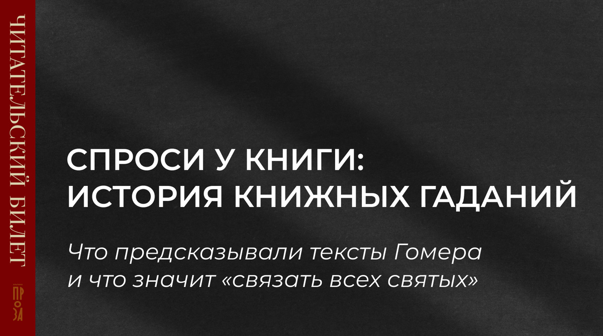 Что предсказывали тексты Гомера и что значит «связать всех святых» Как гадали на книгах в XIX веке и почему библиотека была основным местом дворянского досуга? Разбираемся вместе с Юлией Щербининой, автором книги «Читательский билет: Литературное путешествие по миру отечественных буквоедов, книготорговцев и библиофилов». Близятся новогодние праздники — самое время вспомнить магические ритуалы и обрядовые практики, связанные с книгами. Почетное место среди них занимает библиомантия (лат. biblios — книга + manteia — прорицание) — гадание по книге, раскрываемой наудачу. В средневековой Европе гадали в основном по Библии, на Руси — по Псалтири, в Китае — по Книге Перемен, в исламских странах — по Корану, Фалнаме и стихам выдающихся поэтов вроде Хафиза Ширази. Иман Малеки, Гадание по Хафизу, 2003 Среди способов гаданий наиболее известны В народе книжные гадания служили и вполне прагматическим целям. Так, крестьяне Калужской губернии при пропаже вещей практиковали способ под названием «связа