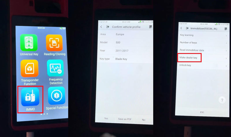 Сегодня я делаю ключ для FIAT 500 2017 года, все ключи утеряны с Autel MaxiIM KM100 через OBD. IMMO >> Fiat >> Manual selection >> Europe >> 500 >> 2011 – 2017 Blade Key >> Yes >> Control unit >> Immobilizer >> Immobilizer(93C86_46) >> Immo function >> Make dealer key Подтвердите данные иммобилайзера, нажмите OK. Поместите пустой 46-транспондер или ключ в зону считывания Autel KM100. Генерация дилерского ключа… Дилерский ключ успешно сгенерирован. Нажмите «Обучение ключа». Все ключи, которые могут завести автомобиль, должны быть обучены. Необученные ключи будут удалены. Новые ключи для обучения должны быть дилерскими ключами. Вставьте ключ для обучения и включите зажигание. Введите 5-значный пароль: 11825 Обучение успешно выполнено! Хотите продолжить со следующим ключом? Нет. Выключите зажигание. Включите зажигание. Количество текущих ключей: 1 Функция обучения завершена. Ключ может работать. Готово, это просто и легко.