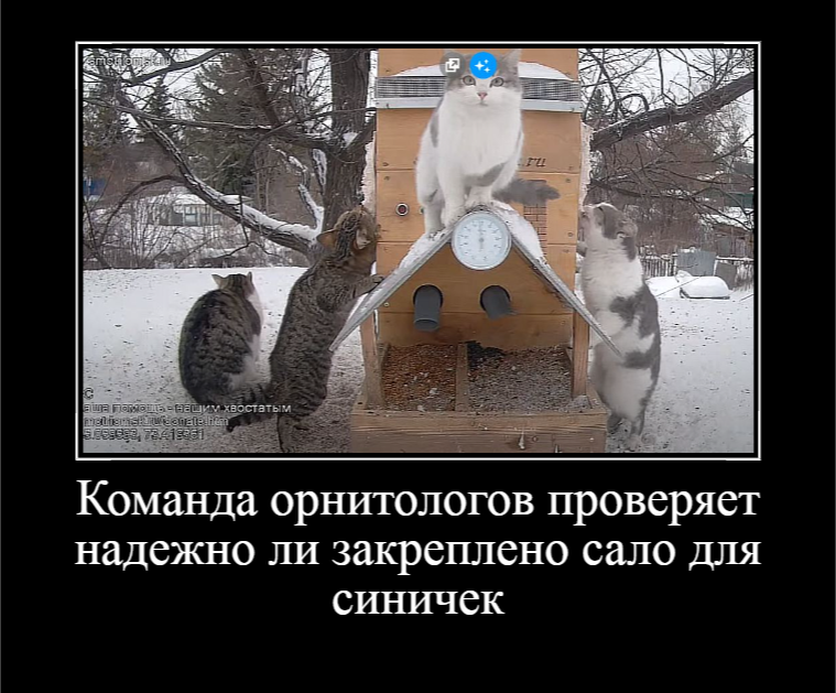 Наверное всем на просторах интернета попадались фото , где кот сфотографирован на кормушке для птиц , максимум на фотографии два кота . Забавно наблюдать когда на кормушку для птиц " приходят " сразу пять котов !!!!! ...... в этом году видел только двух котов , хотя заглядываю редко , в основном погоду посмотреть .