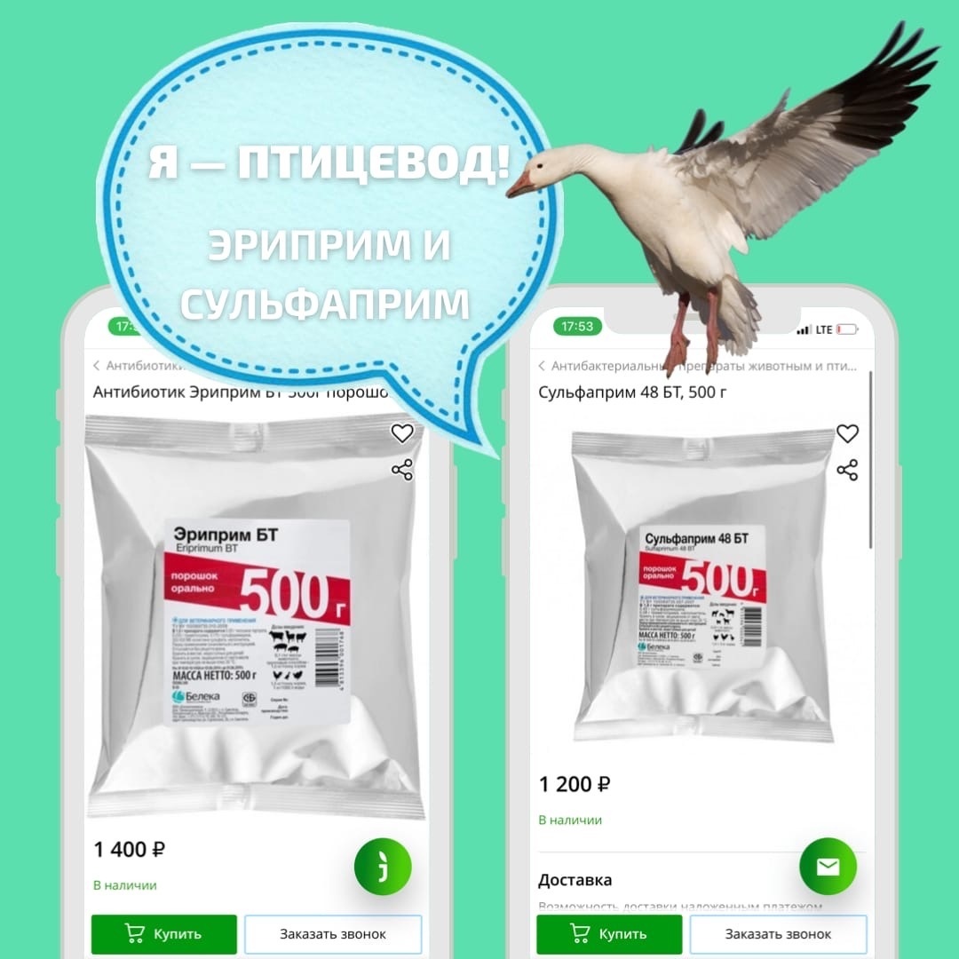 ЭРИПРИМ и СУЛЬФАПРИМ – это препараты от известного белорусского производителя. Завоевали популярность не только благодаря богатому составу – это комплексные антибактериальные средства широкого спектра действия – но и направленностью против кокцидиоза. Дело в том, что сульфаниламидные компоненты обладают не только стойким бактериостатическим эффектом – а ещё и действием против некоторых простейших паразитов, в том числе возбудителя кокцидиоза. Собственно говоря, такое двойное действие полюбилось птицеводам и позволило этим двум препаратам занять почётное место в нашей рубрике. Давайте же познакомимся с ними поближе! В состав ЭРИПРИМ входят 4 действующих вещества – это тилозин тартрат, сульфаметоксазол, триметоприм и колистин сульфат – в общем, у бактерий не остаётся никаких шансов выжить. Это касается и респираторных инфекций, и возбудителей кишечных заболеваний. Средство подходит как для лечения, так и для профилактических пропоек поголовья (в том числе для первой пропойки птенцов). Вы