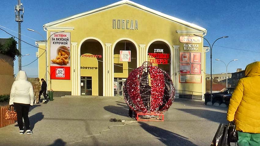 Чтобы ярмарка привлекала больше людей, и чтобы подарить всем новогоднее настроение, организаторы торговых рядов установили декорации – гигантский светящийся ёлочный шарик и искрящуюся арку. Многие горожане уже сделали на этом волшебном фоне памятные фотографии.