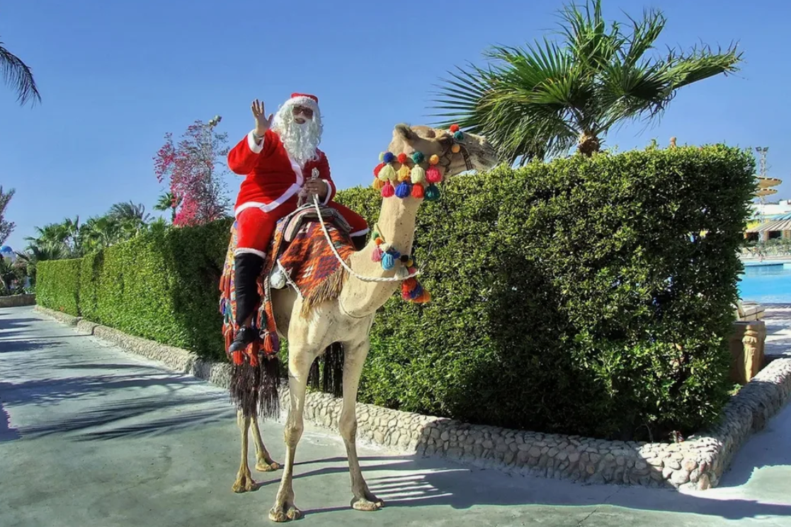 Удивительно, но в арабской стране для туристов повсеместно устанавливают новогодние елки, вокруг которых можно увидеть игрушечных оленей и даже гномов. Дело в том, что на католическое Рождество 25 декабря сюда прилетают толпы европейцев, которым тоже хочется встретить праздники в тепле. А в ресторанах и кафе устраивают праздничные обеды от 3 000 рублей на наши деньги на 1 гостя.