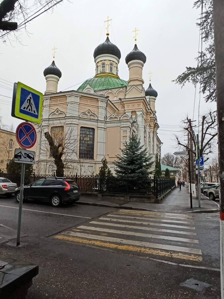 Приветствую всех на канале Крым.посидушек. Итак, если обо всём рассказывать не рекомендовано, то ограничимся прогулками и мыслями в пределах доступного) В дождливый воскресный день пришлось ехать в Симферополь для посещения церкви. Причину не буду указывать, хотя храмы нужно посещать регулярно и без причины. Но вот вечно некогда, и большинство обращается к Богу, когда совсем нужно или невмоготу. Так устроены создания Божьи. Выбрала церковь недалеко от Центрального рынка и центральной улицы города - проспекта Кирова. Называется Храм во имя Трех Святителей. Храм великолепен. Является одним из старейших храмов города. Вообще, в Симферополе множество православных храмов, а также есть католические и мусульманские мечети. И каждый храм со своей богатой историей. Смотреть - не пересмотреть. Храм издалека привлекает внимание мелодичным звоном. Что за музыка! Хвала умелому звонарю. Великолепная архитектура храма заставляет застыть в восхищении. Всё строго и по канонам. Здесь же во дворе х