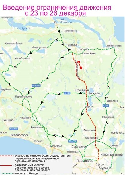 Староприозерское и Новоприозерское шоссе перекроют незадолго до Нового года