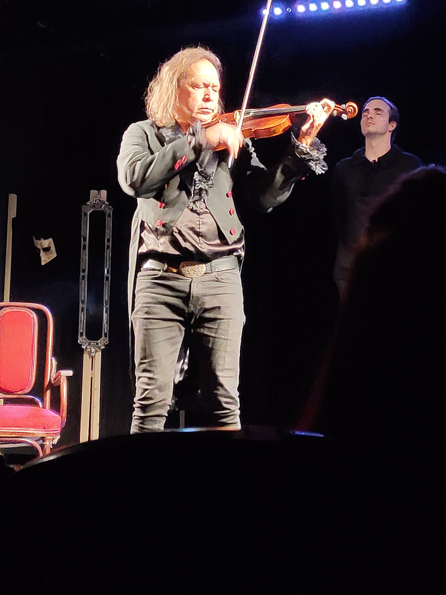 Конечно, идя на спектакль «Искушение Паганини» на сцене театра «Булгаковский дом», я предполагала, что услышу его музыку. Но такого я представить не могла. Святослав Мороз – гений игры, настоящий Паганини, что и неудивительно, когда читаешь про его предков – сплошь музыканты и художники. Как в такой семье не вырасти таланту. Наставником в Московской консерватории у него был Олег Каган, и сейчас Святослав Мороз - художественный руководитель фестиваля «Посвящение Олегу Кагану», а также «Гутман Трио». Если кто узнает, где играет это трио, напишите мне, пожалуйста) Я ждала каждого момента, когда он начнет играть. Это великолепно! Но он гений не только музыкальный. Паганини в его исполнении для меня показался даже более настоящим, чем был бы реальный. Он передал все его метания, борьбу с собой и «дьяволом», которого прекрасно сыграл Алексей Воронов. Но не только скрипка Паганини звучала для нас в этот вечер. Лия Штельман обладает чудесным голосом, и при этом еще и очень хорошо играет, пере