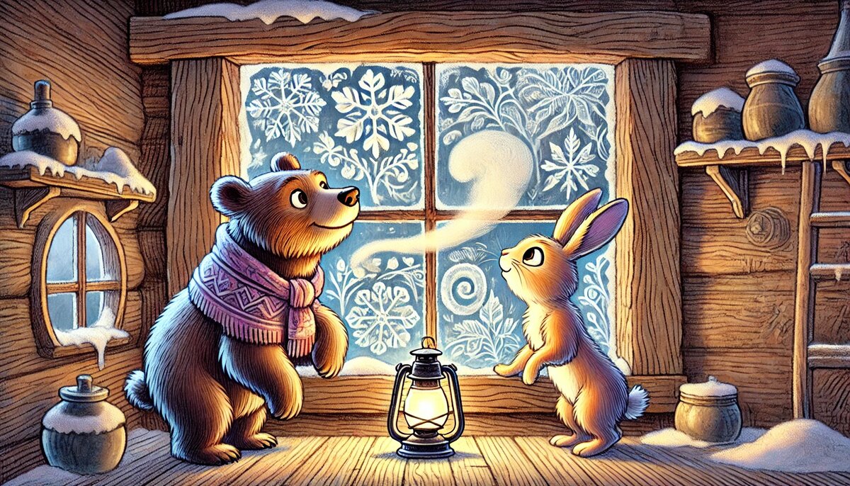 В заснеженном волшебном лесу, где снег переливался в лучах солнца, как хрустальные звёзды, жил весёлый и неугомонный зайчонок по имени Тимка. Его длинные ушки были всегда наготове уловить звуки приключений, а глаза сияли, будто ночные звёзды. Каждое утро он начинал с радостных прыжков по снежным сугробам, искренне наслаждаясь каждым моментом зимы. Однажды, поскользнувшись на скользкой тропинке, Тимка кубарем скатился в мягкий сугроб. Выбравшись оттуда, он заметил, как снежные кристаллы, прилипшие к его шерстке, заискрились в солнечных лучах. — Ах, как красиво! — воскликнул он, заворожённо рассматривая сверкающий узор. — Но что это такое? Почему снег такой волшебный? Тимкины вопросы донеслись до ветвей высокой сосны, на которой сидела Мудрая сова по имени Соня. Её круглые глаза внимательно смотрели на мир, а перья мягко подрагивали от лёгкого ветра. — Тимка, — ласково произнесла Соня, расправляя свои крылья. — Мороз — это дыхание зимы, которое превращает лес в ледяное царство красоты. О