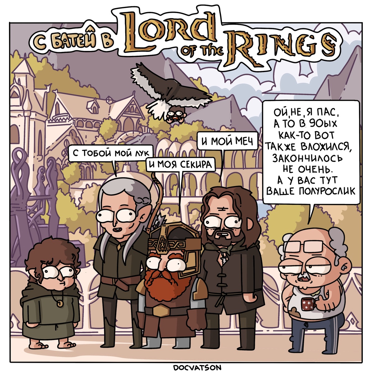 Чиловый батя путешествует по популярным кино- и игровым мирам: 12 смешных комиксов от художника из Москвы