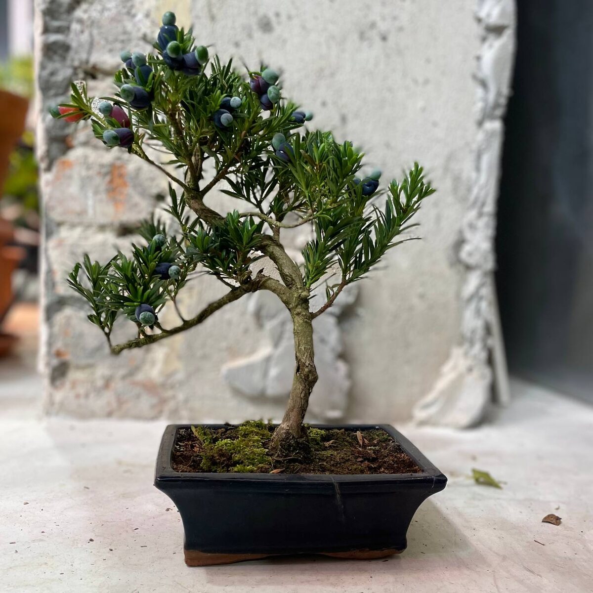Бонсай Подокарпус (лат. Podocarpus) - это вид хвойных растений семейства Подокарповые, представленный кустарниками и высокими деревьями. Подокарпус можно узнать благодаря оригинальной листве, она окрашена в тёмно-зеленый оттенок и имеет линейную форму. Подокарп или Ногоплодник, хвойное растение семейства Подокарповые, порядка Сосновых. Конкретно вид Podocarpus Macrophyllus - растет на Юге Японии и Китая.