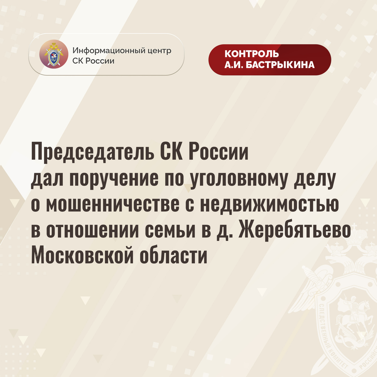 Председатель СК России дал поручение по уголовному делу о мошенничестве с недвижимостью в отношении семьи в д. Жеребятьево Московской области