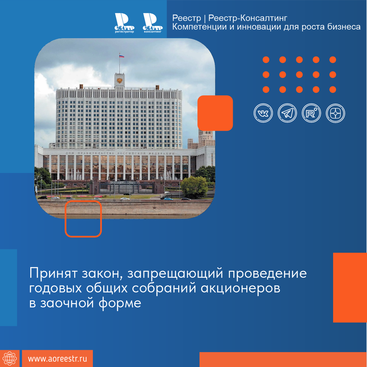 Государственная Дума РФ приняла в третьем чтении законопроект № 722148-8, согласно которому возможность проведения в заочной форме общих собраний акционеров, повестка которых содержит вопросы: