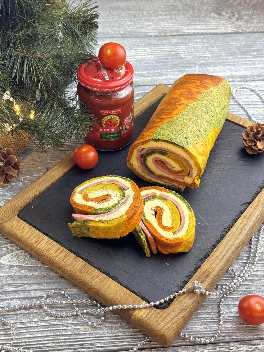 Не только вкусный, но и очень красивый рулет для новогоднего стола! Три ярких цвета теста — томатного, шпинатного и сырного непременно создадут вам праздничное настроение. Превратите кухню в творческую мастерскую и приготовьте это блюдо вместе с семьей 🎨