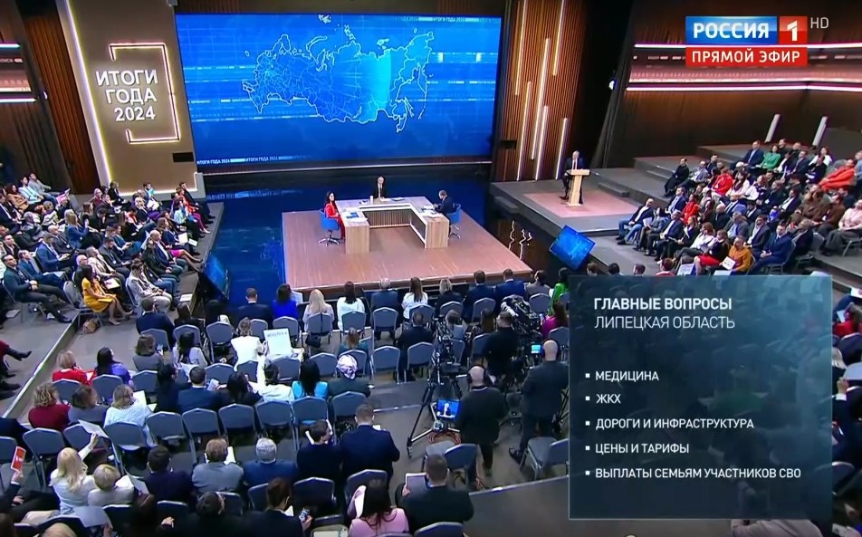 Сегодня, 19 декабря, прошла прямая линия и большая пресс-конференция президента Владимира Путина. Масштабное мероприятие провели в Гостином Дворе в Москве. Пресс-конференцию Владимир Путин начал со слов, что «всё начинается с экономики»: — За два года рост экономики в РФ составил около 8%, — пояснил президент — При этом уровень безработицы в России составляет 2,3% - такого никогда вообще не было. Жителей волновали темы жилья, ЖКХ, СВО, газификации и роста цен на топливо, выплаты военным и людям, чьи документы были утеряны. — Наши войска точно выбьют ВСУ из Курской области. После это все будет восстановлено. Это точно, — подчеркнул глава государства. — Можно и нужно исправить ситуация с бойцами, которые не являются участниками СВО, а считаются участниками КТО. Я проверю эту информацию, все будет исправлено. Не обошлось и без вопросов от иностранных журналистов о внешней политике государства. — Россия стала гораздо сильнее за предыдущее время, мы стали суверенной страной, мы мало от кого
