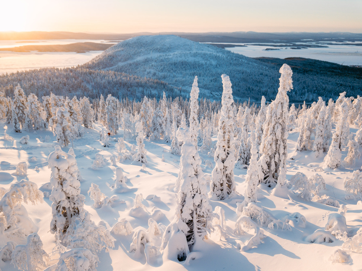 Тут зима — не просто время года: царица в окружении снега, льда и ветра. Здесь снег переливается всеми цветами радуги, окрашиваясь в жёлтые, розовые, фиолетовые и даже зелёные оттенки в зависимости от того, какие краски сегодня на небе. А мороз и ветер творят из деревьев настоящие произведения искусства, превращая их в сказочных существ.